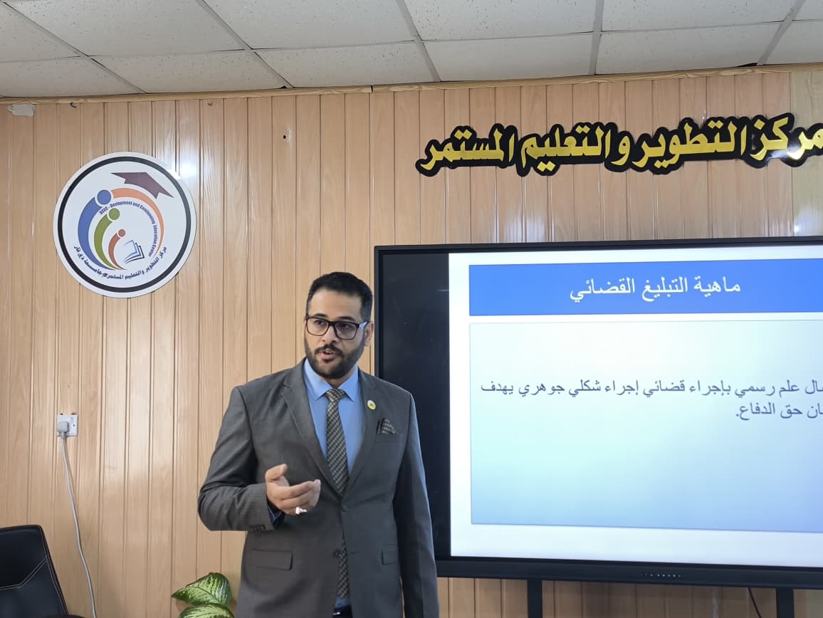 اقام مركز التعليم المستمر دورة قانونية متخصصة لموظفي جامعة ذي قار وعدد من منتسبي الدوائر الحكومية الأخرى، بهدف تعزيز المعرفة القانونية لديهم والارتقاء بكفاءتهم في التعامل مع الجوانب الإدارية والتشريعية التي تتطلبها طبيعة عملهم. جاءت هذه الدورة استجابة لحاجة المؤسسات إلى تطوير مهارات موظفيها في فهم التشريعات النافذة، وتطبيق الضوابط الإدارية بصورة دقيقة بما يسهم في تحسين جودة الأداء المؤسسي.